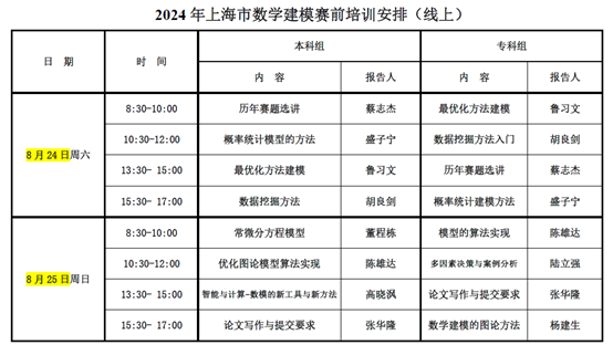 2024 年上海市数学建模竞赛赛前培训直播链接
