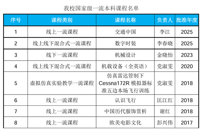 近日,根据《教育部关于公布第三批国家级一流本科课程认定结果的通知》,我校《交通中国》和《数字时装》2门课程获认定为第三批国家级一流本科课程。截至目前,学校共获认定国家级一流本科课程8门。
